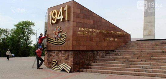 За три дня до празднования 72-й годовщины Дня Победы в Великой Отечественной Войне городские власти решили снять украшения в виде гвардейских лент с Обелиска Славы, расположенного в Парке им. Абая.
