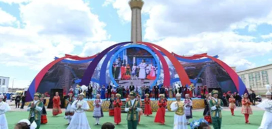 У стелы "Қазақстан халқына мың алғыс" развернулось яркое и красочное действо, которое не оставило равнодушным ни одного зрителя.