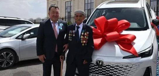 В Туркестане отпраздновали 100-летие ветерана: ему вручили ключи от нового автомобиля