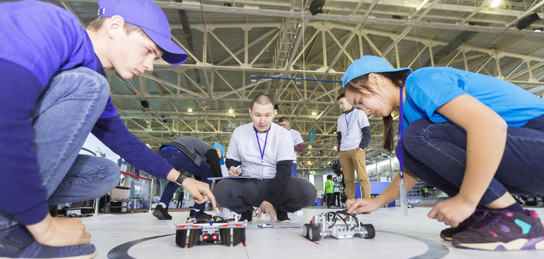 28 марта 246 победителей региональных туров двух возрастных категорий "10+" и "14+" в легкоатлетическом манеже прославленной олимпийской чемпионки Ольги Рыпаковой продемонстрировали свои навыки по моделированию трехмерных объектов при помощи компьютерных программ "PTC Creo Parametric 3.0" и "Blender", решению сложных задач по программированию, и спортивной робототехнике по направлениям "Гонка по линии", "Сумо" и "Кегельринг".