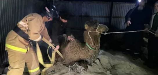 "Верблюжонок спасен сотрудниками МЧС из канализационного колодца. Спасатели использую лебедку аварийно-спасательного автомобиля вытянули бедолагу. Инцидент произошел на территории одного из частных домов города Арал Кызылординской области", – говорится в релизе, распространенном в среду.