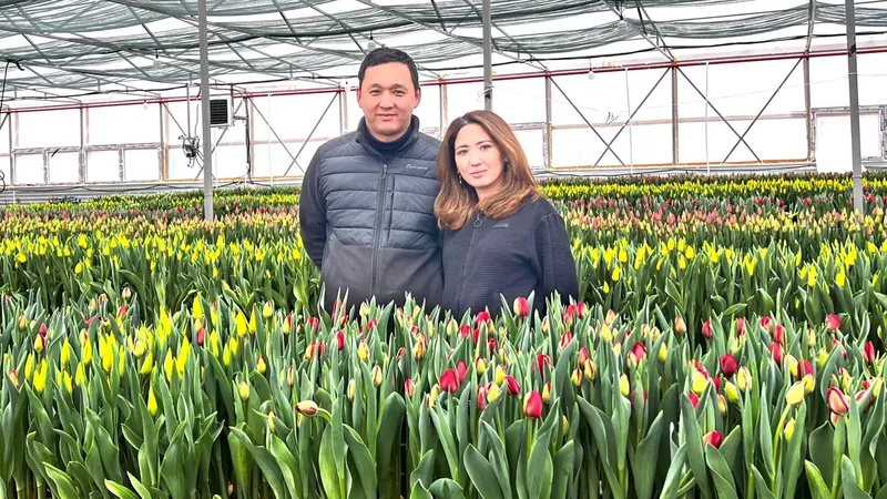 Молодая семья из Атырау решилась в этом году на смелый эксперимент, вырастив в регионе с переменчивым климатом 200 тысяч разноцветных тюльпанов в собственной теплице.