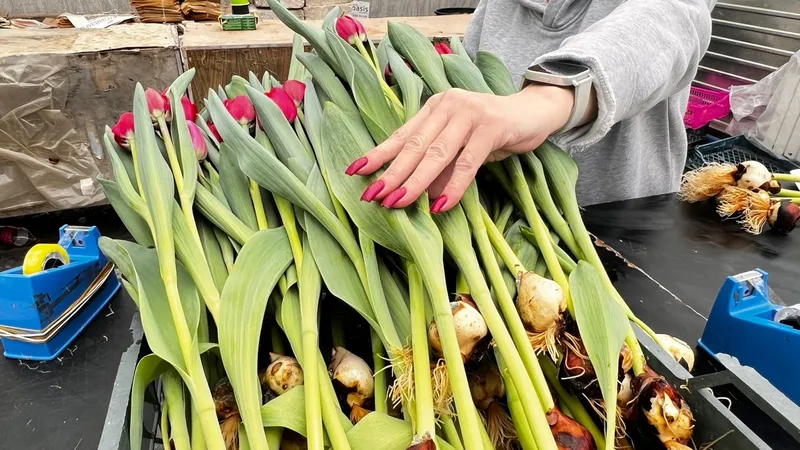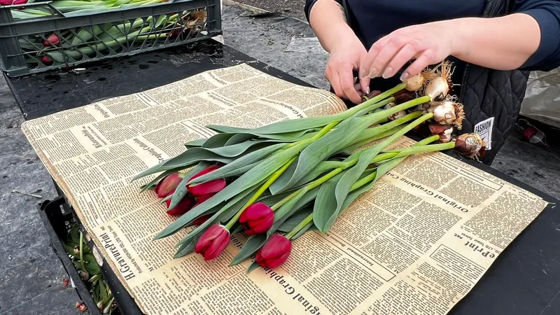 По словам Айгерим Даулетияровой, тюльпаны собирают с еще не распустившимися бутонами, затем упаковывают вместе с луковицами в специальную бумагу. Так цветы дольше сохраняют свежесть и легче переносят транспортировку.
