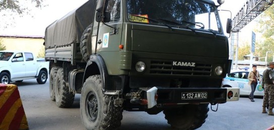 Подъезжая к территории воинской части к шлагбауму, водитель КАМАЗа стал поворачивать в воинскую часть.