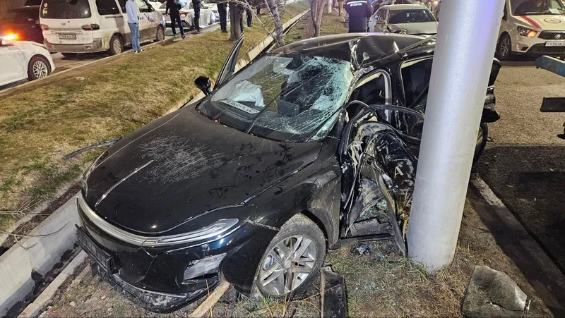 Участниками аварии стали два автомобиля Toyota Camry серебристого цвета и автомобиль такси Hongqi E-QM5.