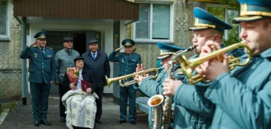 В Петропавловске курсанты академии Национальной гвардии и военнослужащие воинской части 6637 поздравили ветерана Федора Щеглова с 80-летием Победы. У дома 98-летнего фронтовика прошел строевой марш расчетной группы в сопровождении военного оркестра, сообщает Zakon.kz.