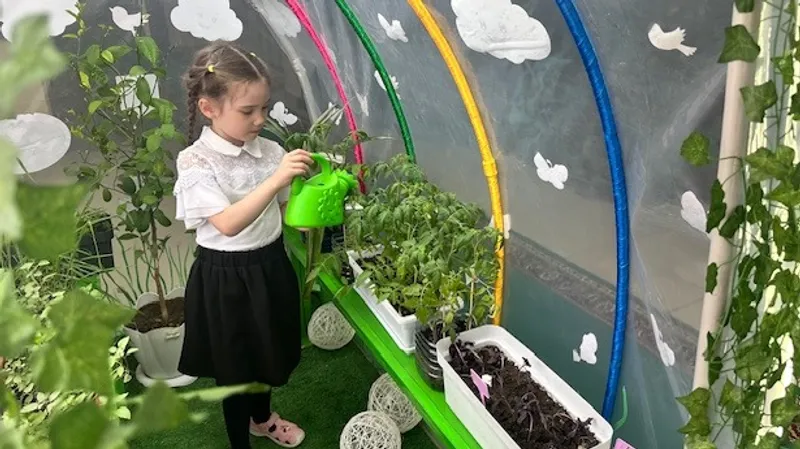 В учреждении давно отказались от покупки зелени: на небольших грядках в теплице круглый год растут петрушка, руккола, укроп, кинза, а также дозревают овощи. В 2026 году юные садоводы посадили баклажаны, помидоры, зеленый лук и болгарский перец. Эльмира Тлеукеева с гордостью отмечает, что во дворе учреждения разбит и настоящий огород, где также активно трудятся дети.