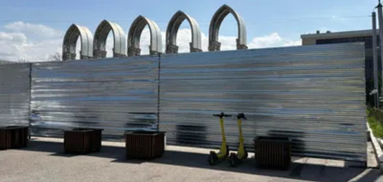 В Алматы площадь перед Казахстанским центром делового сотрудничества (КЦДС) "Атакент" огородили большим забором. В акимате рассказали Zakon.kz, что послужило причиной.