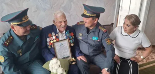 Накануне юбилея Великой Победы поздравить ветерана пришли представители Абайского гарнизона регионального командования "Восток".
