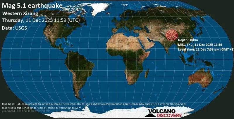 11 декабря на западе КНР произошло землетрясение магнитудой 5,1. Его зафиксировали в Тибетском автономном районе, сообщает Zakon.kz.