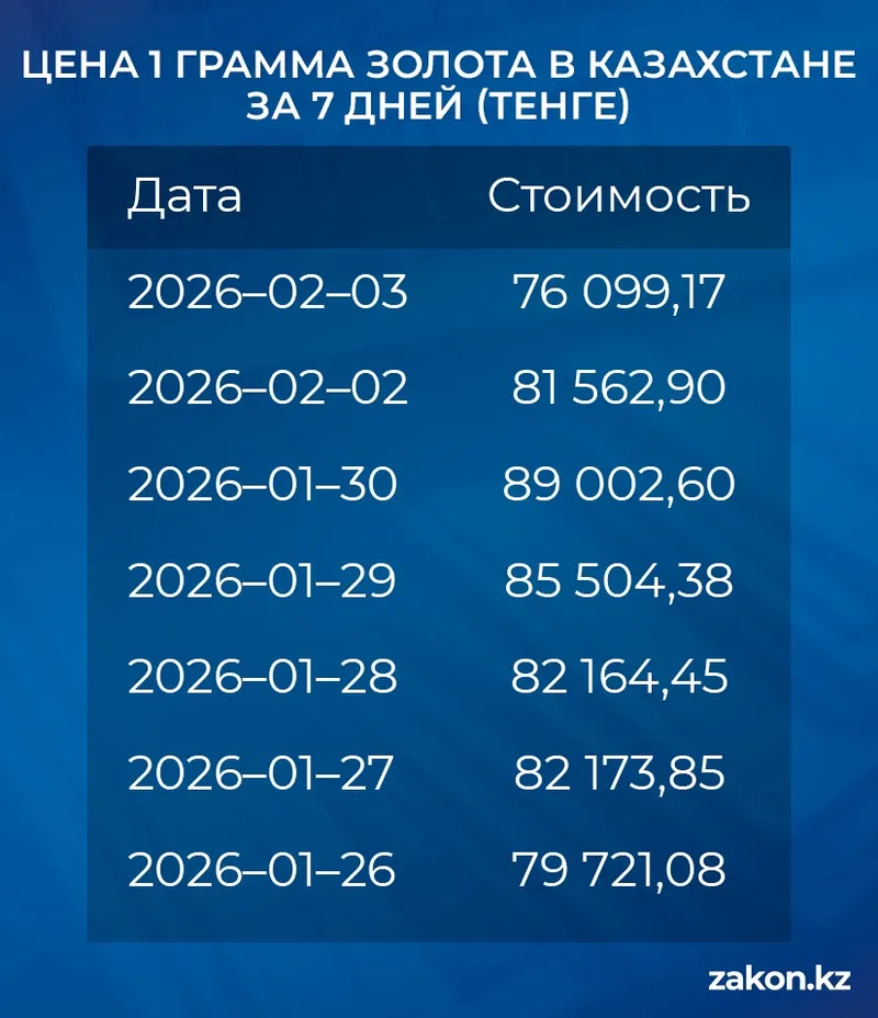 Золото, которое весь прошлый год считалось самым надежным убежищем для капиталов, преподнесло неожиданный сюрприз. Если 29 января 2026 года стоимость фьючерсов на золото на Чикагской товарной бирже достигала 5626 долларов за унцию, то к началу февраля котировки просели ниже психологического уровня в 5000 долларов. В Казахстане падение оказалось еще более чувствительным: всего за три дня стоимость грамма золота упала с 89 002 до 76 099 тенге.