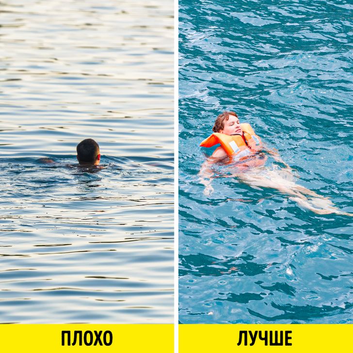 Если вас унесло в море или же вы заплыли слишком далеко и сильно замерзли, не пытайтесь отчаянно грести в попытках согреться. Чтобы не допустить переохлаждения, необходимо расслабиться, как можно меньше при этом двигая руками и ногами, и принять позу эмбриона: как бы сесть на воду, обняв руками колени. Чем больше тела будет над водой, тем меньше тепла вы потеряете.