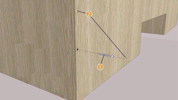 Для соединения корпусных элементов из ДСП используется конфирматы с декоративными заглушками. 1. Конфирмат. 2. Декоративная заглушка