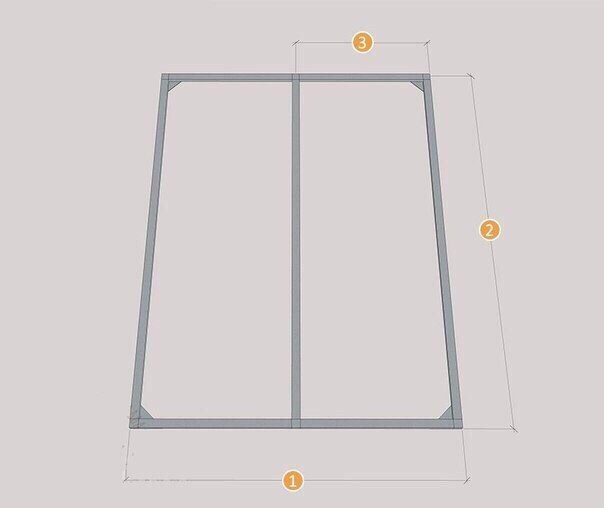 1.2. Ширина и длина рамы кровати под матрас, принимаются равными габаритам матраса с небольшим запасом не более 5 мм. 3. Половина ширины рамы - место установки продольной перемычки для усиления каркаса