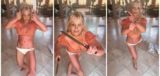 Любящая потанцевать звезда нулевых на своей странице в Instagram опубликовала очередной видеоролик. Только вот на этот раз Бритни устроила опасные танцы с кухонными ножами.