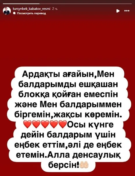 "Я никогда не блокировал своих детей. Я рядом со своими детьми, люблю их. До сегодняшнего дня я трудился ради них, и буду трудиться. Дай Бог здоровья!" – написал Кабатов в Stories 3 ноября.