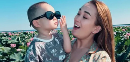 Сын Акерке и певца Али Окапова активно познает деревенскую жизнь: мальчику даже удалось прокатиться на настоящем тракторе.