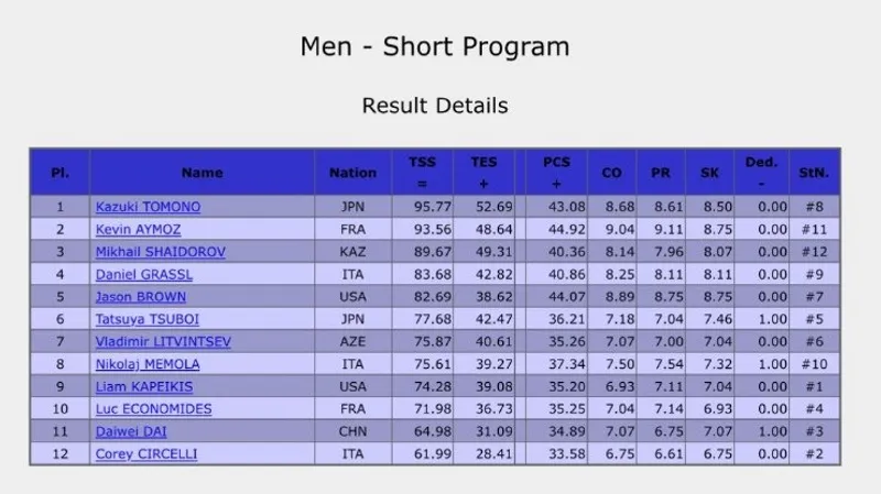 Утром 15 ноября серебряный призер первенства планеты-2025 Михаил Шайдоров выступил в мужском одиночном катании на пятом этапе серии Гран-при по фигурному катанию 2025/2026 Скейт Америка, сообщает Zakon.kz.