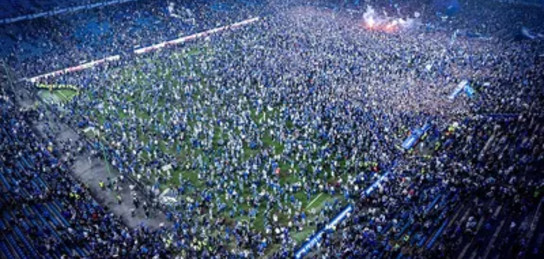 Все хорошо закончилось бы, но после окончания матча несколько тысяч местных болельщиков выбежали на поле, чтобы отпраздновать данное событие.