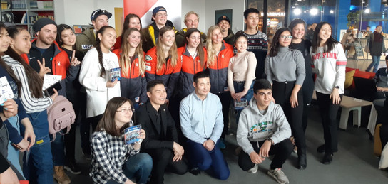 Мы встретились с экс-чемпионкой мира 26-летней Эшли Колдвэлл и выигравшей на Этапе Кубка мира в Алматы серебряную медаль 23-летней Меган Ник на следующий день после соревнований в American Corner. Девушки остались довольны организацией соревнований, похвалили наших волонтеров, а Эшли продемонстрировала, что немного говорит по-русски.