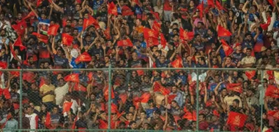 Около местной арены собрались десятки тысяч болельщиков, чтобы отметить первый трофей "Роял Челленджерс" в премьер-лиге Индии.