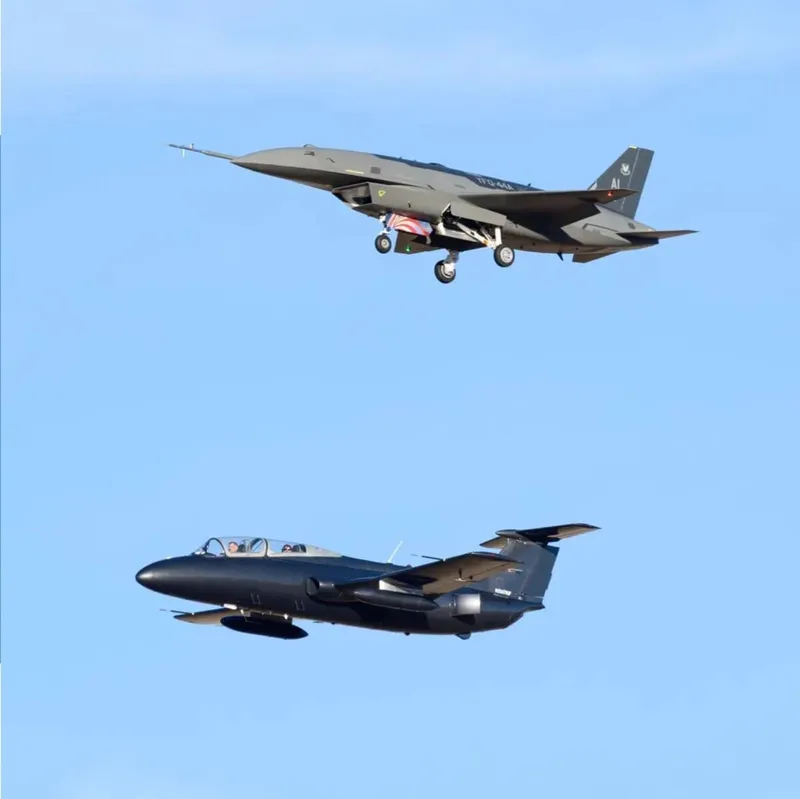 Читатель издания The War Zone поделился с журналистами фотографиями YFQ-44A в полете, сделанными на авиабазе Южной Калифорнии в Викторвилле. Беспилотник сопровождали два учебно-тренировочных самолета L-29 "Дельфин", выполнявшие роль самолетов сопровождения.