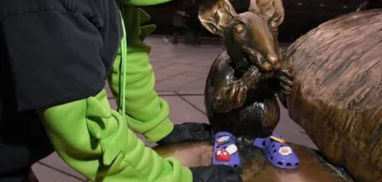 Особенность его инициативы в том, что он обувает статуи в кроксы. Видео с его работами стали настоящими вирусными хитами в социальных сетях, привлекая внимание зрителей и СМИ по всему миру.
