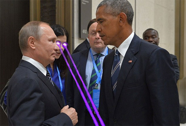 Фото с президентами России и США - Владимиром Путиным и Бараком Обамой, обменявшимися холодными взглядами во время саммита G20 , попало в фотошоп-битву на портале Reddit , передает Lenta.ru