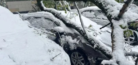 Из-за сильного "ливневого" снегопада в аэропортах, дороги замело, начали падать деревья и обрываться линии электропередач, люди остались без электричества, связи и телевидения. Падающие деревья повредили не один десяток машин.