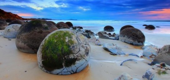 На самом деле это конечное же, никакие не яйца, а просто округлые каменные валуны, но выглядят они очень впечатляюще. Валуны Моераки формировались на дне моря в течение миллионов лет и сегодня они привлекают на пляж Коекохе множество любопытных туристов.