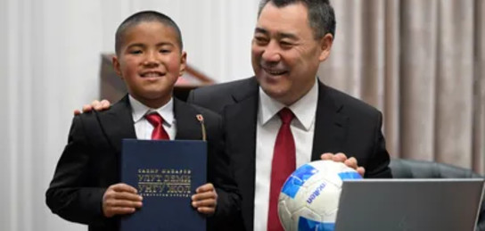 Президент Кыргызстана Садыр Жапаров лично вручил подарки четверокласснику и поделился с ним своим мобильным телефоном, сообщает Zakon.kz.