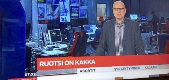 Ведущий Йоуни Сипиля во время выпуска новостей рассказывал о землетрясении в Японии. На экране большими буквами появилась надпись "Ruotsi on kakka", что можно перевести как "Швеция - какашка".