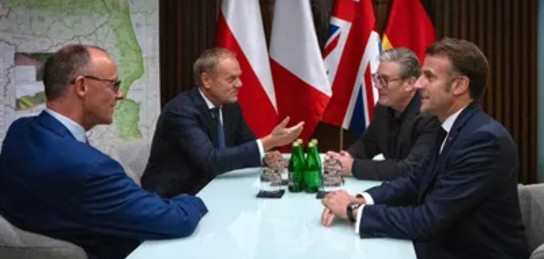Утром, 10 мая 2025 года, в Киев приехали президент Франции Эммануэль Макрон, польский премьер-министр Дональд Туск, канцлер ФРГ Фридрих Мерц и британский премьер Кир Стармер. Как ранее отметил в соцсети Х глава Франции, они прибыли на Украину для обсуждения мира, суверенитета и будущего республики.
