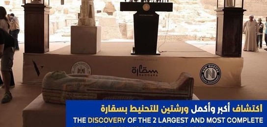 The minister announced in an international press conference that the Egyptian archaeological mission headed by the SCA, working in the Sacred Animals Cemetery (Bubasteum) in #Saqqara, uncovered for the first time the largest & most complete 2 #mummification workshops. pic.twitter.com/PwfOivAe1t