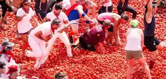 Как передает Sky News, мероприятие является ежегодным. Оно собирает тысячи людей со всего мира. В программу празднования входят ярмарки, танцы, салют и в качестве кульминации – массовая потасовка с использованием помидоров.