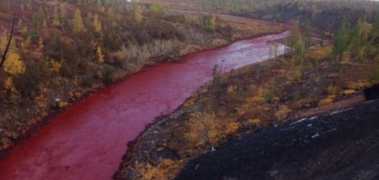 В Норильске река окрасилась в багровый цвет