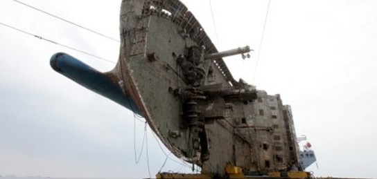 Подготовка к извлечению южнокорейского корабля, водоизмещением более 6,8 тыс. тонн, началась ещё в апреле 2015 года. К нему прикрепили 66 железных тросов и соорудили специальную платформу, на который затем поместили остов.