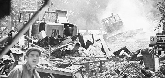 Снос домов, пострадавших от землетрясения, на улице Ленина