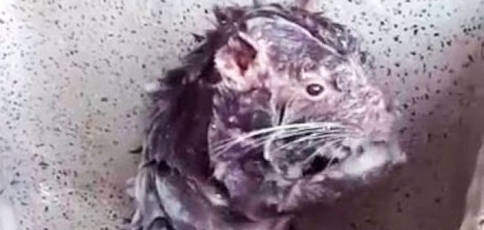 В городе Уарас в Перу в объектив камеры угодила необычная сцена того, как намыленная крыса моется под душем, прямо как человек.